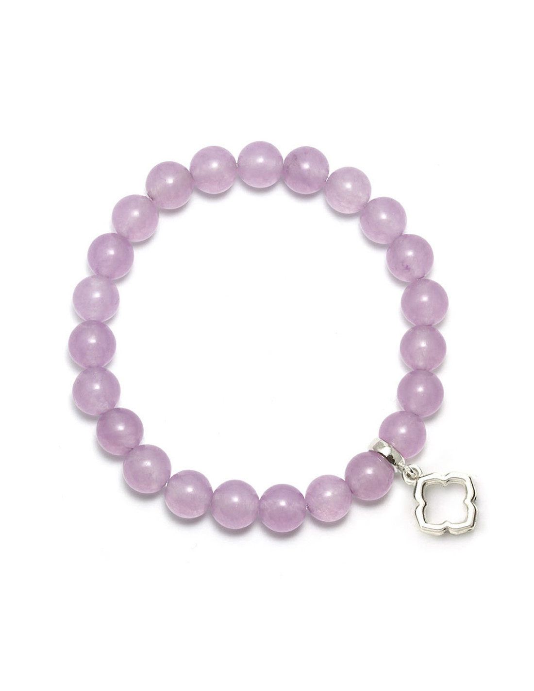 Bransoletka na elastycznej gumce jubilerskiej wykonana z barwionego jadeitu oraz srebrnej zawieszki w kształcie kwiatu lotosu - symbolu piękna i doskonałości.