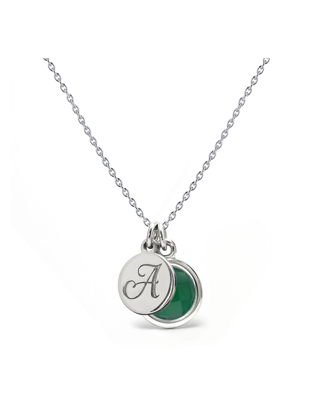 Aura - Srebrny naszyjnik personalizowany z zielonym onyksem