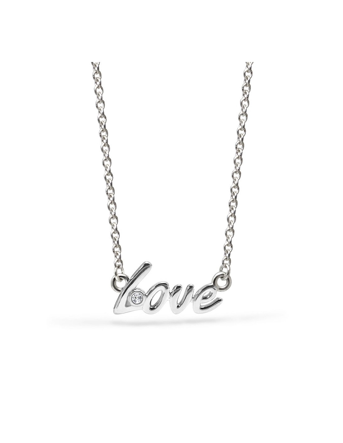 Nowoczesny naszyjnik z napisem "miłość" ręcznie wykonany z najwyższej jakości srebra oraz ozdobiony naturalnym kamieniem w szlifie brylantowym. Regulowana długość naszyjnika pozwala na jego idealne dopasowanie.