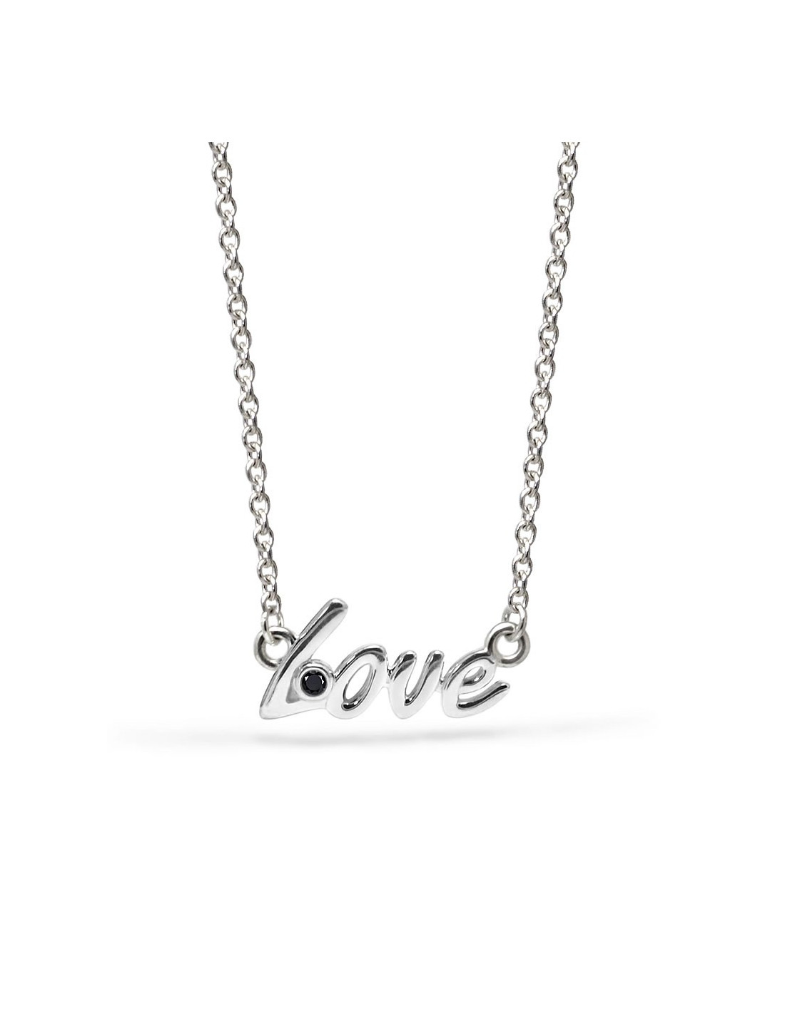 Nowoczesny naszyjnik z napisem "miłość" ręcznie wykonany z najwyższej jakości srebra oraz ozdobiony naturalnym kamieniem w szlifie brylantowym. Regulowana długość naszyjnika pozwala na jego idealne dopasowanie.