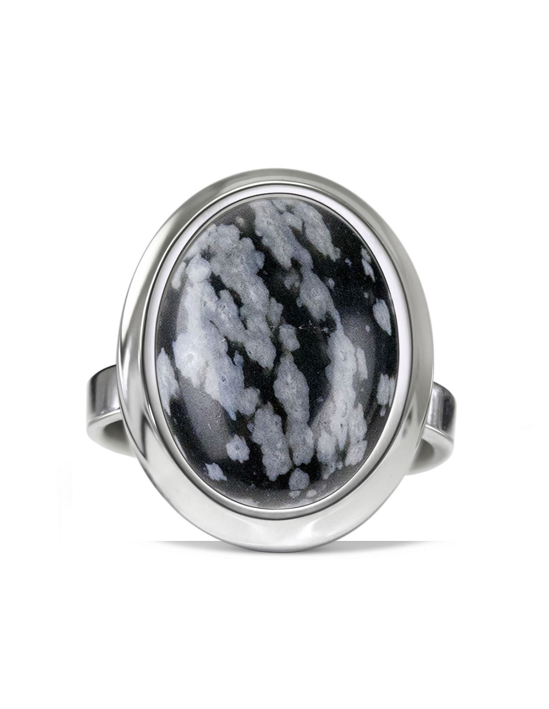 Stone - Srebrny pierścionek z obsydianem śnieżnym