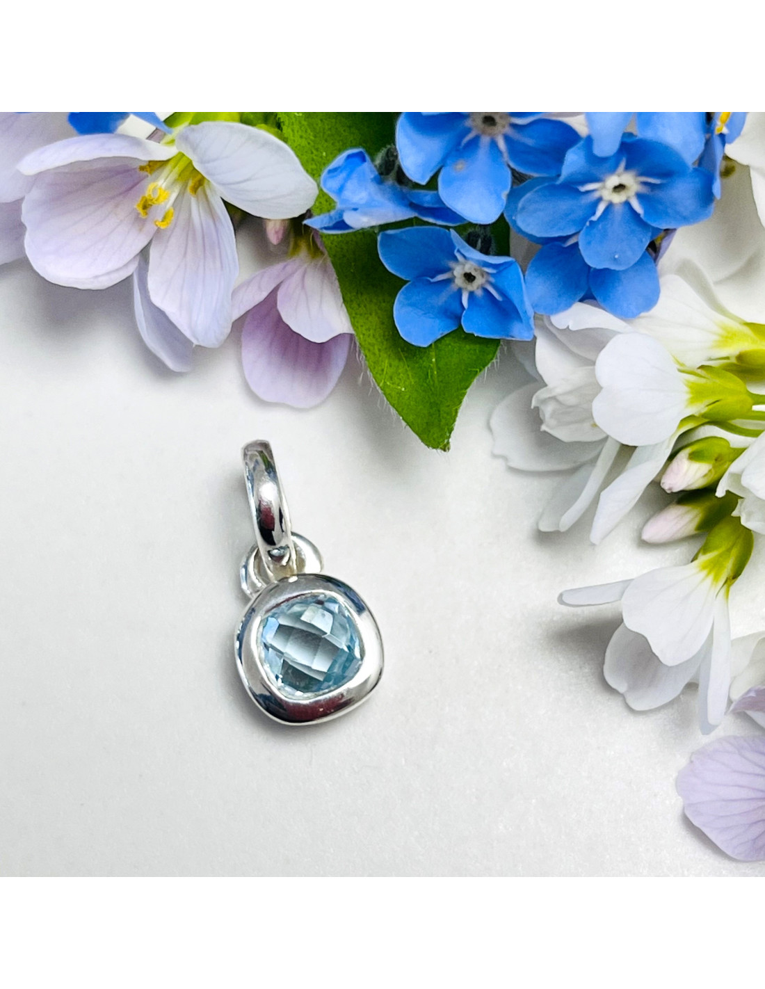 Spring - Srebrna zawieszka z niebieskim topazem